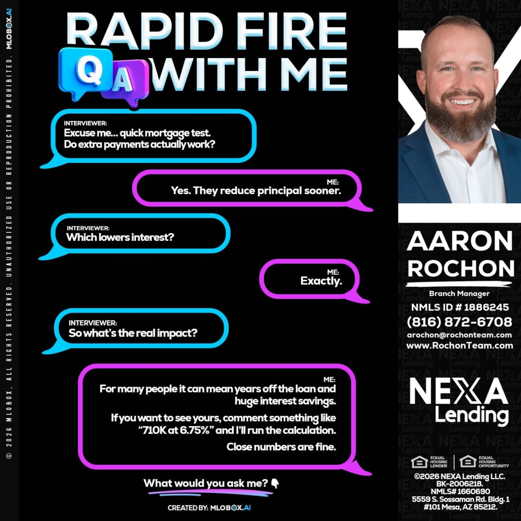 Hi, my name is Aaron Rochon. I’m a Loan Officer with NEXA Lending LLC., offering personalized mortgage solutions, fast customized quotes, great rates and service with integrity.